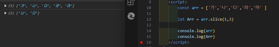 배열에서 기존의 배열을 변동할 수 있는 splice() 메서드와 변동하지 않는 slice() 메서드가 있다.